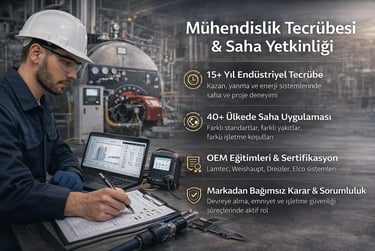 Endüstriyel kazan sistemlerinde ve ısıtma hatlarında devreye alma, emniyet ve işletme güvenliği süreçlerini yönetiyoruz.